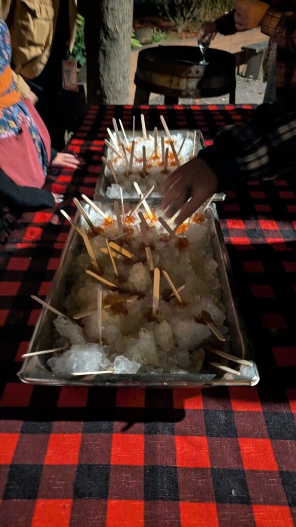 今回貸切イベントでお邪魔したのはSucrerie de la Montagne。メープルシロップの採取の時期ではなかったのですが、メープシロップの生産場所を見せてもらったり、シュガーシャックの定番でもあるメープルを使った家庭料理をいただいたり、カントリーミュージックの生演奏で歌って踊って、と楽しすぎる時間を過ごさせてもらいました。(締めはもちろんメープル・トフィー)